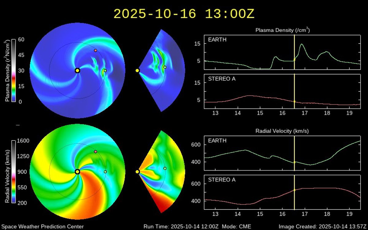 Аналитики ожидают, что магнитное поле Земли будет возмущено на всем протяжении 16 октября. К вечеру, по мере приближения выбросов, возмущение будет расти; в районе 21:00 по Москве оно перерастет в магнитную бурю.