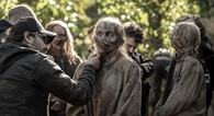 Оказалось, статистов, исполняющих роли ходячих мертвецов, гримируют довольно просто. Вместо тяжелого пластического грима актерам просто выдают цельные маски зомби, полностью закрывающие головы.