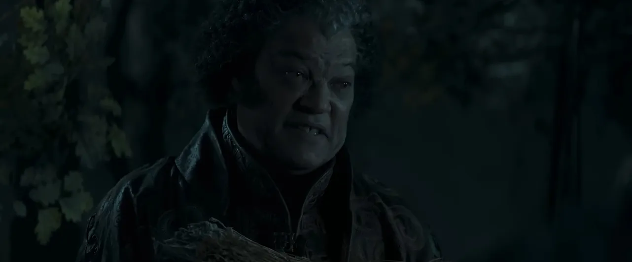 Как и в романе Сапковского, Регис обитает на старом кладбище и выдает себя за лекаря, занимающегося сбором трав. Правда, в отличие от книжного Региса, герой Фишберна не особо стесняется своей улыбки — видимо, умеет прятать клыки.