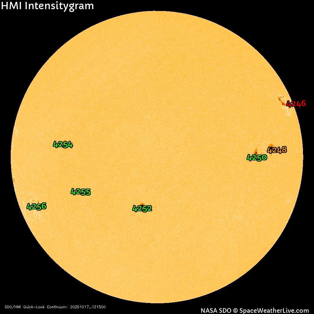 Вероятность вспышек максимального класса X все еще оценивается в 15%, для вспышек предмаксимального класса M вероятность равна 60%. Вскоре пятно AR4246, генерирующее вспышки, уйдет за край солнечного диска и эта угроза будет снята.