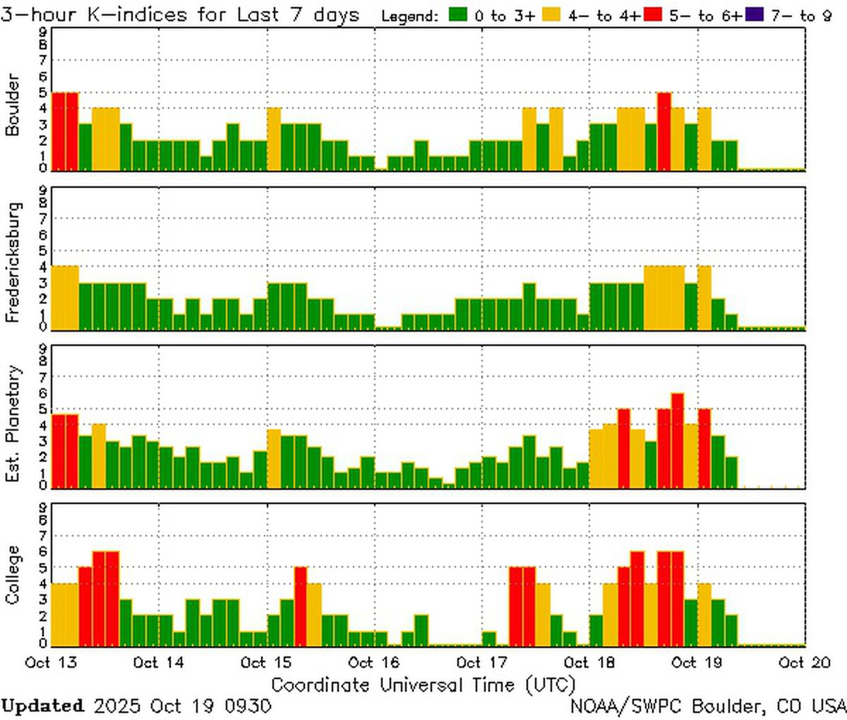 Ночь с 18 на 19 октября отметилась неожиданной магнитной бурей, не прогнозировавшейся аналитиками, но дальше геомагнитная обстановка должна улучшиться. В NOAA и Met Office считают, что 20 октября магнитных бурь почти наверняка не будет.