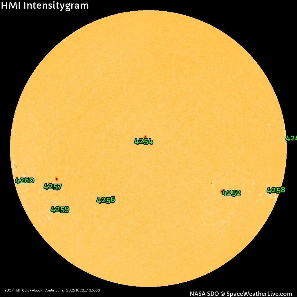 Крупное пятно AR4248, ответственное за магнитные бури последних дней, ушло за границу видимого диска Солнца. Оставшиеся пятна обладают простыми магнитными конфигурациями и вряд ли выдадут мощные вспышки.