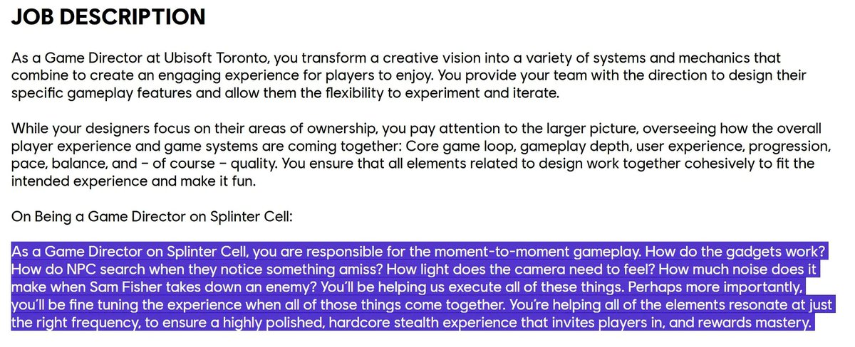 Это была бы уже вторая смена руководителя разработки ремейка Splinter Cell. Изначально игрой занимался Дэвид Гривель, в 2022 году он уволился из Ubisoft; имя его преемника неизвестно. Возможно, второй руководитель разработки тоже покинул проект.