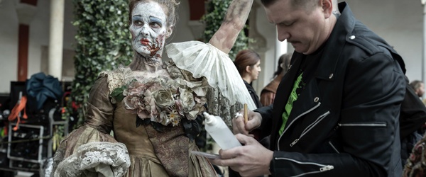 На крупных планах видно, что грим зомби-актеров хитрее, чем у обычных ходячих мертвецов. Вместе с простыми силиконовыми масками, закрывающими все лицо, здесь использовали более сложный пластический грим с накладками.