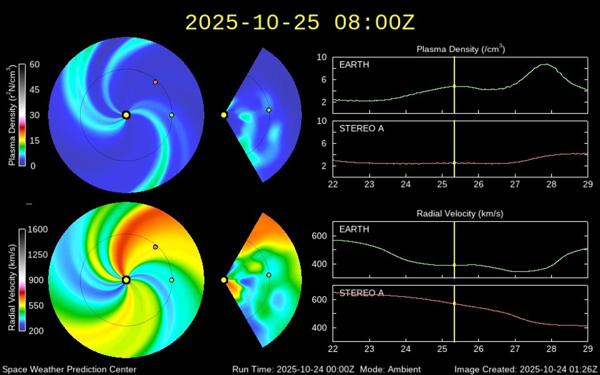 Геомагнитная обстановка 25 октября снова будет спокойной, но это спокойствие подходит к концу, считают аналитики NOAA США и британского Met Office. По всей видимости, к Земле идет корональный выброс массы.