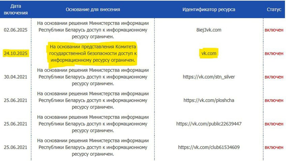 ВКонтакте заблокировали в Беларуси по запросу КГБ