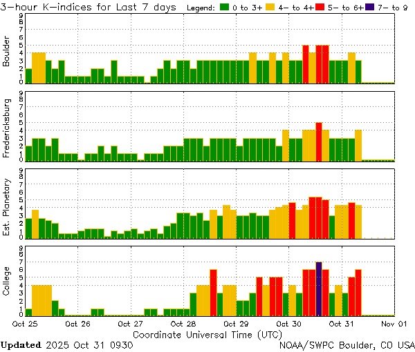 Аналитики не прогнозировали магнитную бурю на 31 октября, однако в первой половине дня детекторы NOAA зафиксировали шторм. Кроме того, геомагнитная буря 30 октября была мощнее прогнозов: в некоторых регионах ее сила достигала класса G2.