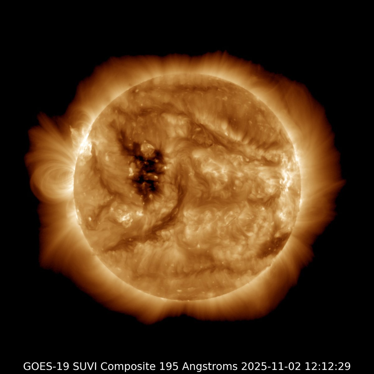 Судя по размеру и расположению, эта корональная дыра будет влиять на Землю сильнее, чем предыдущие. Скорее всего, поток частиц из нее достигнет Земли к концу рабочей недели, в районе 6 ноября.