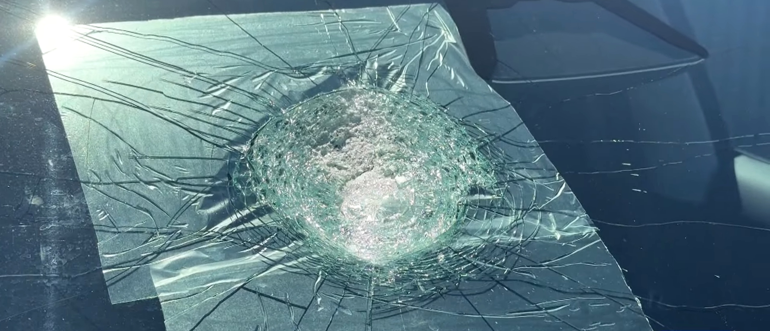 В месте удара лобовое стекло оказалось не только разбито, но и частично расплавлено. Примечательно, что на автопилот удар не произвел никакого впечатления: машина продолжила двигаться дальше.