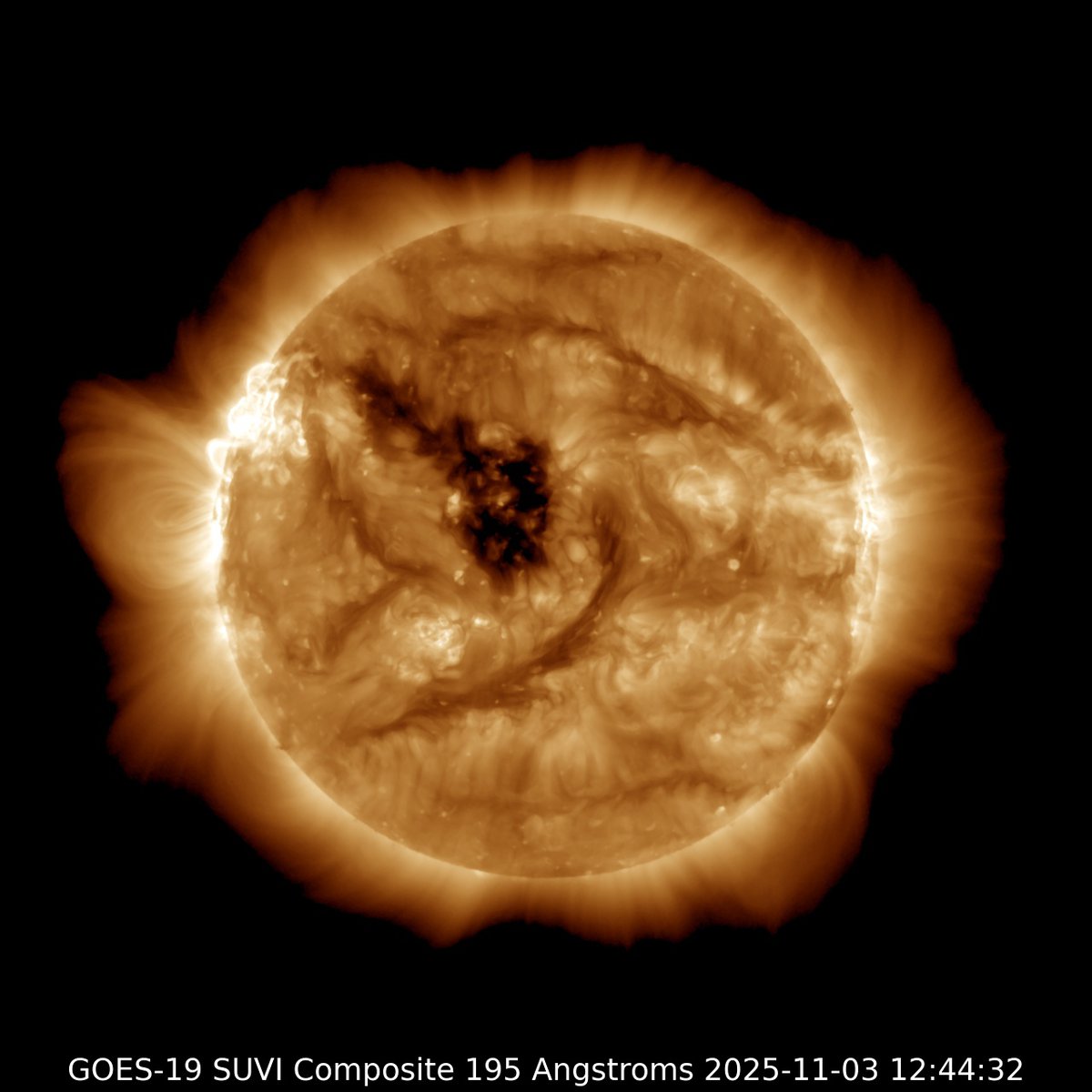 Кроме того, вместе с активными пятнами к Земле поворачивается и крупная корональная дыра. Поток частиц из нее может достичь нашей планеты уже вечером 5 ноября, если только солнечный ветер не окажется необычно быстрым или необычно медленным.