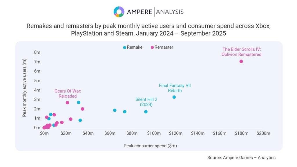 Кроме того, есть и исключения. Например, ремастер The Elder Scrolls IV: Oblivion показал выдающиеся результаты: по оценке аналитиков, выручка игры превысила $180 миллионов, а месячная аудитория была на уровне 7 миллионов человек.