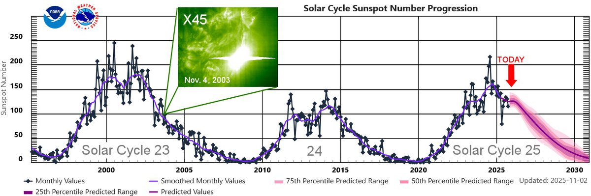 4 ноября 2025 года исполнилось 22 года со дня самой мощной солнечной вспышки космической эры. Вспышка была настолько интенсивной, что ее рентгеновское излучение временно «ослепило» спутники наблюдения и вызвало масштабное «радиозатмение» над Северной Америкой.