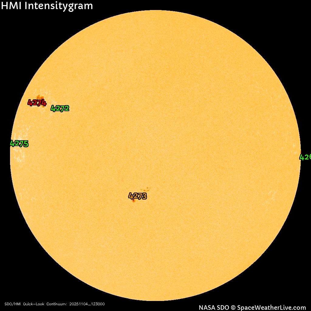 Наибольшую опасность представляет крупное пятно AR4274, также активность проявляет пятно AR4273. Есть вероятность, что последуют вспышки и от пятен AR4275 и AR4272.