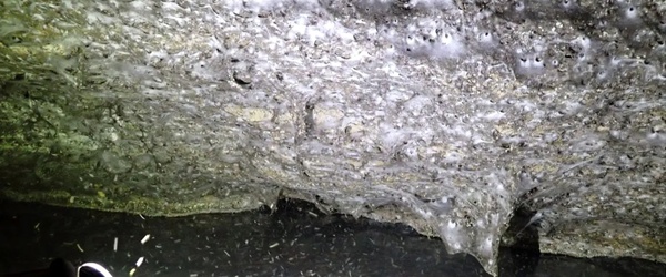 Воздух внутри насыщен сернистым газом, а по дну течёт поток, богатый серой. Эти условия поддерживают жизнь бактерий, мошек и пауков, образующих замкнутую экосистему.