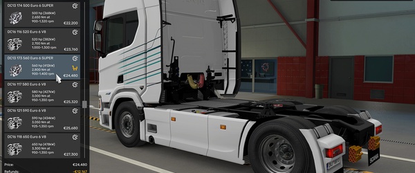 В частности, в игру планируется ввести линейку двигателей Scania SUPER мощностью от 420 до 560 лошадиных сил. Также появятся новые двигатели V8 мощностью 590, 660 и 770 лошадиных сил, новые трансмиссии и топливные баки.