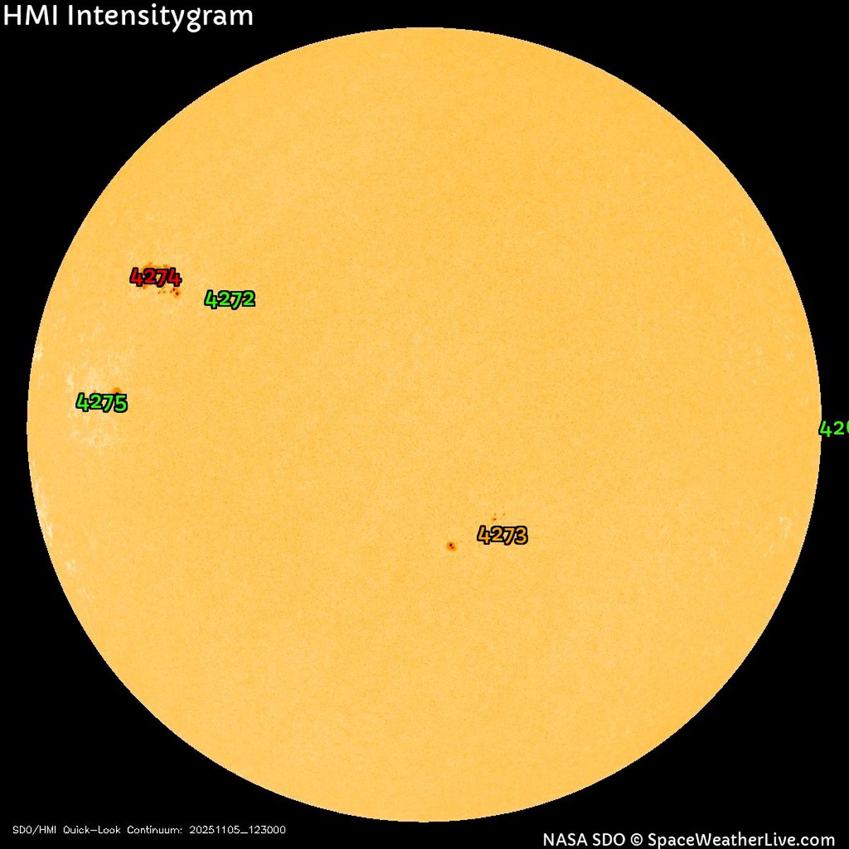Вероятно, магнитные бури растянутся как минимум до середины ноября. Сейчас на видимой части Солнца есть несколько очень активных пятен, бомбардирующих космос вспышками и корональными выбросами; в частности, мы впервые с июня видели вспышку максимального класса X.