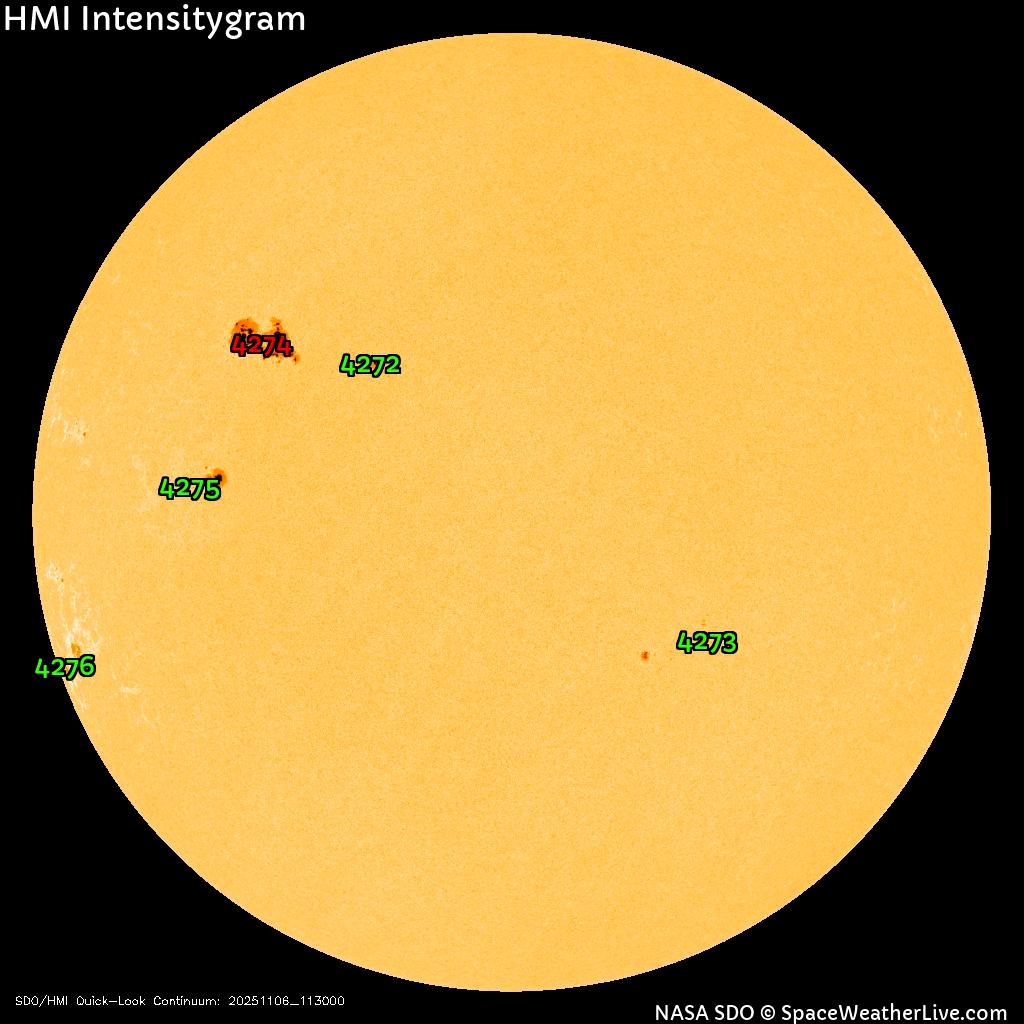 Есть вероятность, что магнитные бури продолжатся и после 8 ноября. Солнце продолжает показывать высокий уровень активности, на видимой части звезды есть ряд крупных пятен с нестабильными магнитными полями.