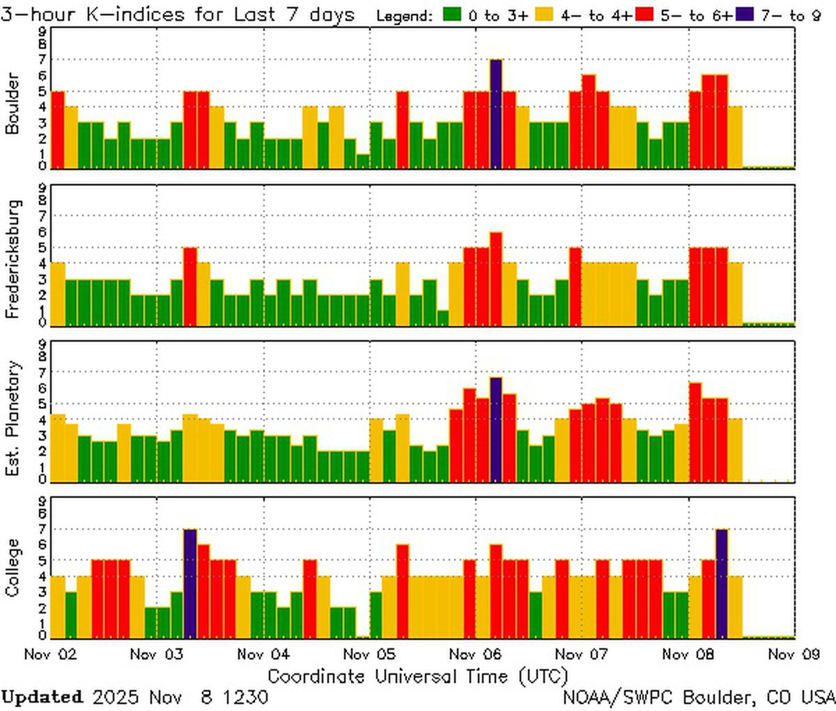 Аналитики ожидают, что 8 ноября магнитные бури растянутся почти на весь день, но 9 ноября ситуация улучшится. Пока в прогнозе упоминается только одна буря класса G1: она начнется в районе 3 утра по Москве.