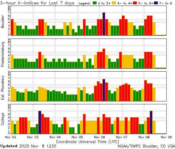 Аналитики ожидают, что 8 ноября магнитные бури растянутся почти на весь день, но 9 ноября ситуация улучшится. Пока в прогнозе упоминается только одна буря класса G1: она начнется в районе 3 утра по Москве.