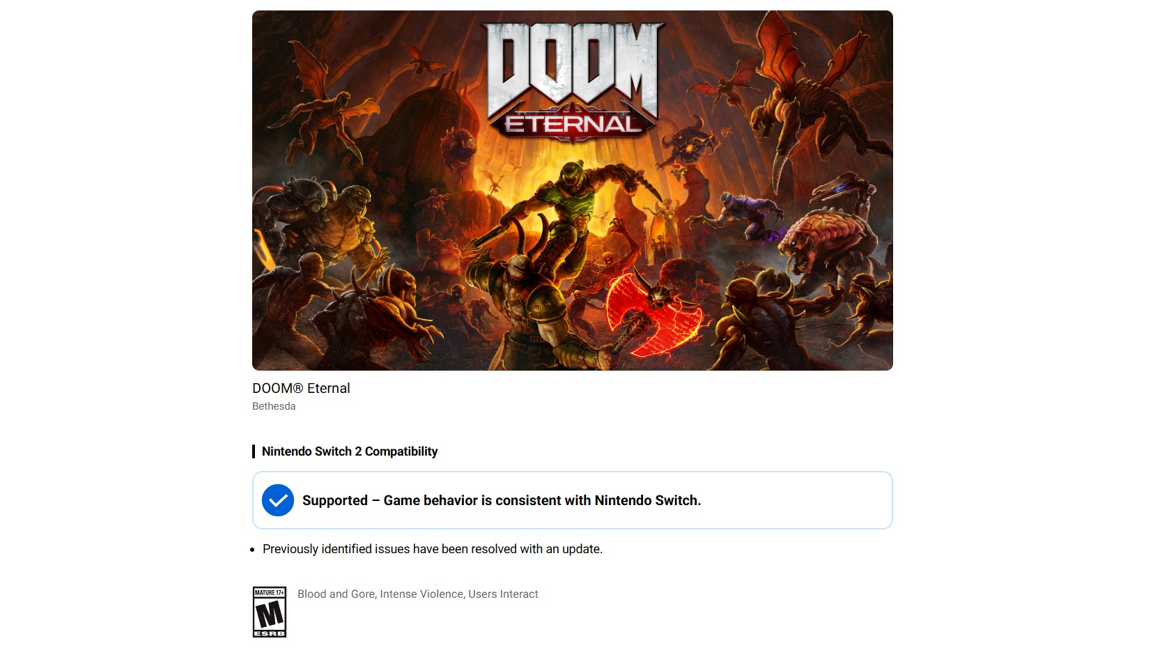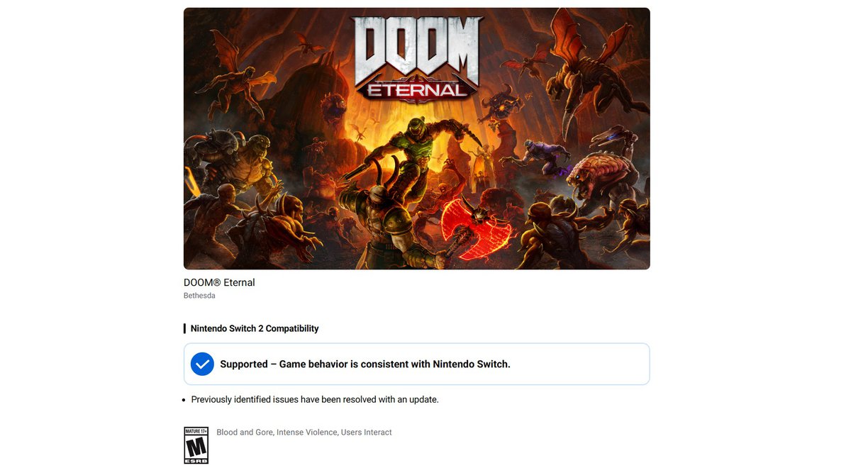 Например, сервис в курсе, что у Doom Eternal были определенные проблемы с работой на Switch 2, но с тех пор разработчики выпустили патч, все исправили — и теперь игра работает нормально.