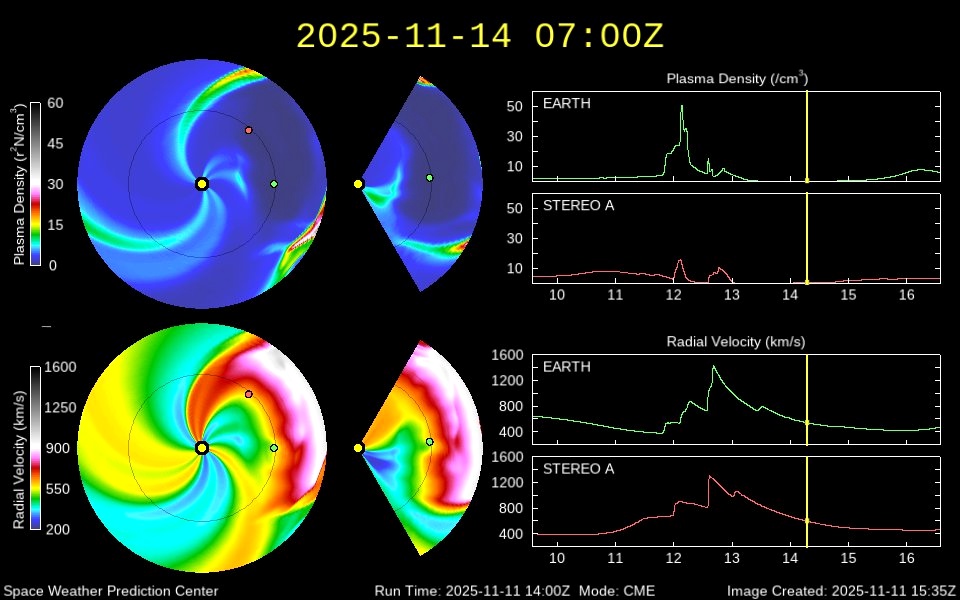 Согласно предварительному прогнозу, 15 ноября магнитосфера Земли продолжит стабилизироваться. Крупное солнечное пятно AR4274, спровоцировавшее ноябрьскую магнитную бурю, почти ушло с видимой части Солнца, другие мощные возмущения сейчас не ожидаются.
