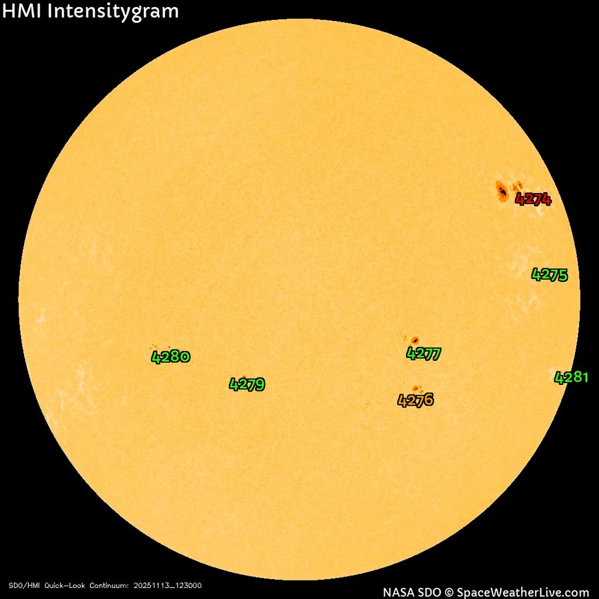 Правда, есть еще пятно AR4276, тоже отличающееся нестабильной конфигурацией магнитного поля, но оно пока не выдавало мощных вспышек. Возможно, вторая половина ноября пройдет достаточно спокойно.