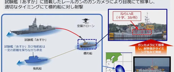 Стрельбы проводились с борта опытового корабля Asuka водоизмещением 6200 тонн. На его кормовой палубе был установлен прототип рельсотрона, над которым агентство ATLA работает с середины 2010-х годов.