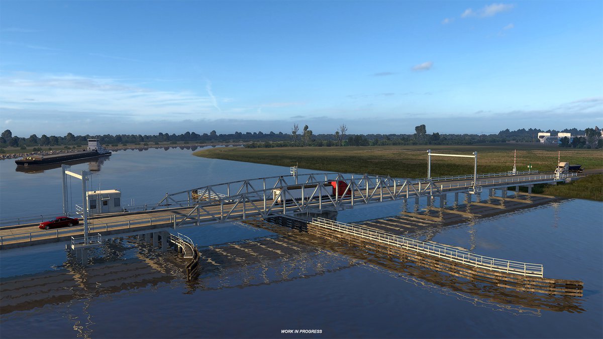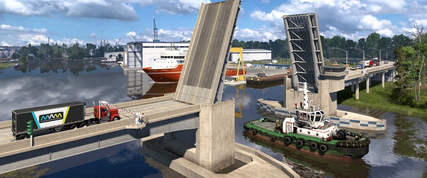 Также игроки увидят разводные мосты и шлюзы. Можно предположить, что заехать на край такого моста и свеситься на грузовике вниз в игре все-таки не получится.
