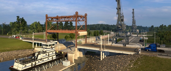 Новая подборка скриншотов дополнения про Луизиану для симулятора дальнобойщика American Truck Simulator посвящена переправам. Это не только мосты: здесь, например, можно покататься на паромах.