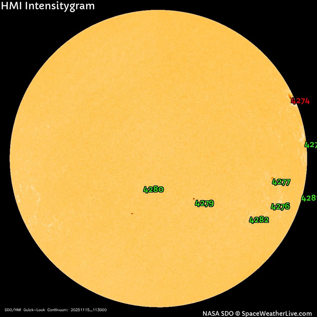 Скорее всего, магнитная буря 16-17 ноября станет последней как минимум до конца следующей недели. Пятно AR4274, ответственное за последние бури, практически скрылось с видимой части Солнца и уже не представляет опасность.