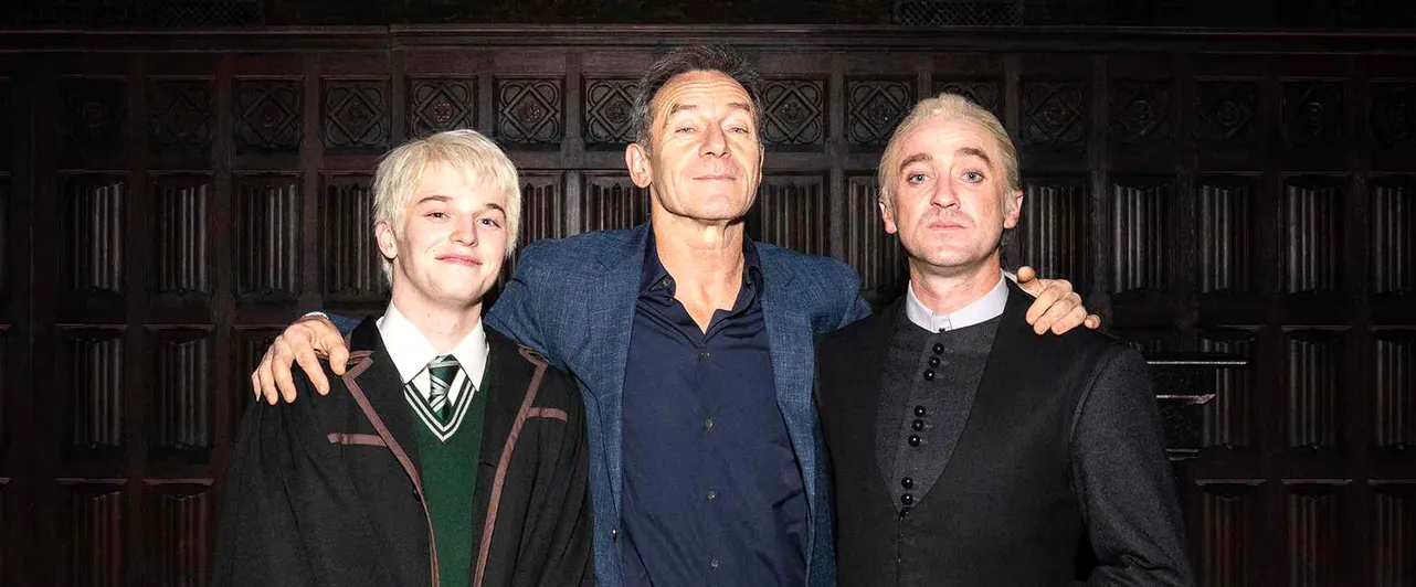 Айзекс не ограничился словами, сопроводив свой восторженный отзыв фотографиями, на которых он обнимается с Фелтоном, и короткой видеозаписью финального поклона Тома. На одном из снимков можно заметить Эйдана Клоуза, играющего сына Драко по имени Скорпиус.