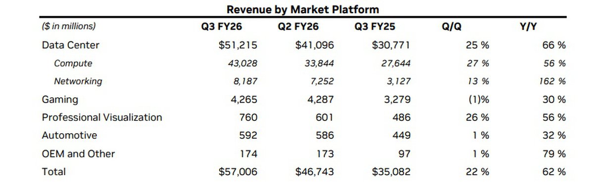 Корпорация Nvidia выпустила отчет за третий квартал 2026 финансового года. Выручка Nvidia достигла $57 миллиардов, это рекорд: показатель оказался на 62% выше, чем годом ранее.