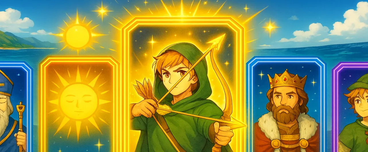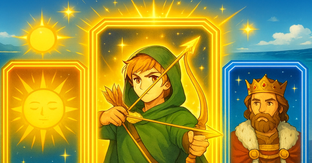 Стрелец: «Солнце», «Туз кубков», «Девятка пентаклей»