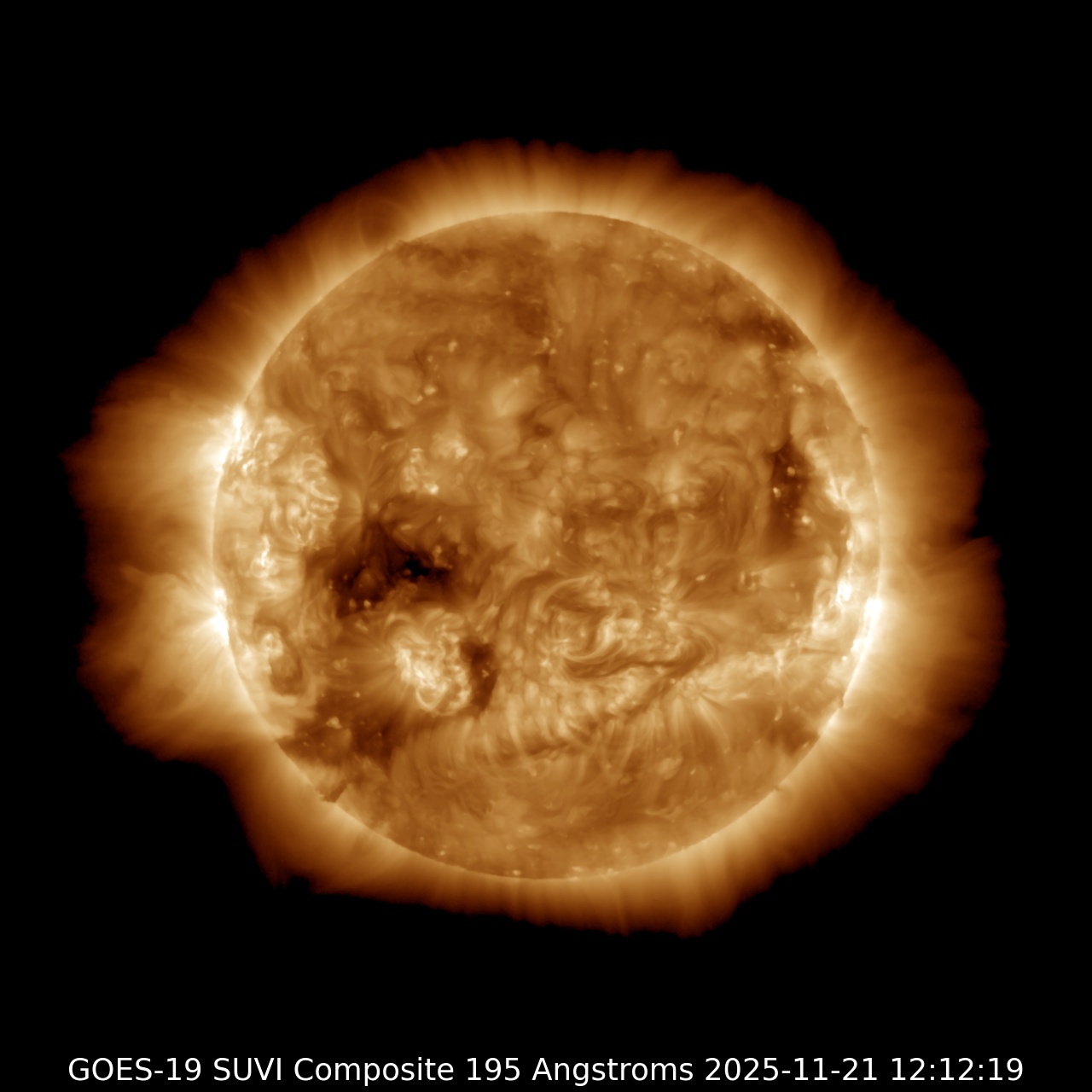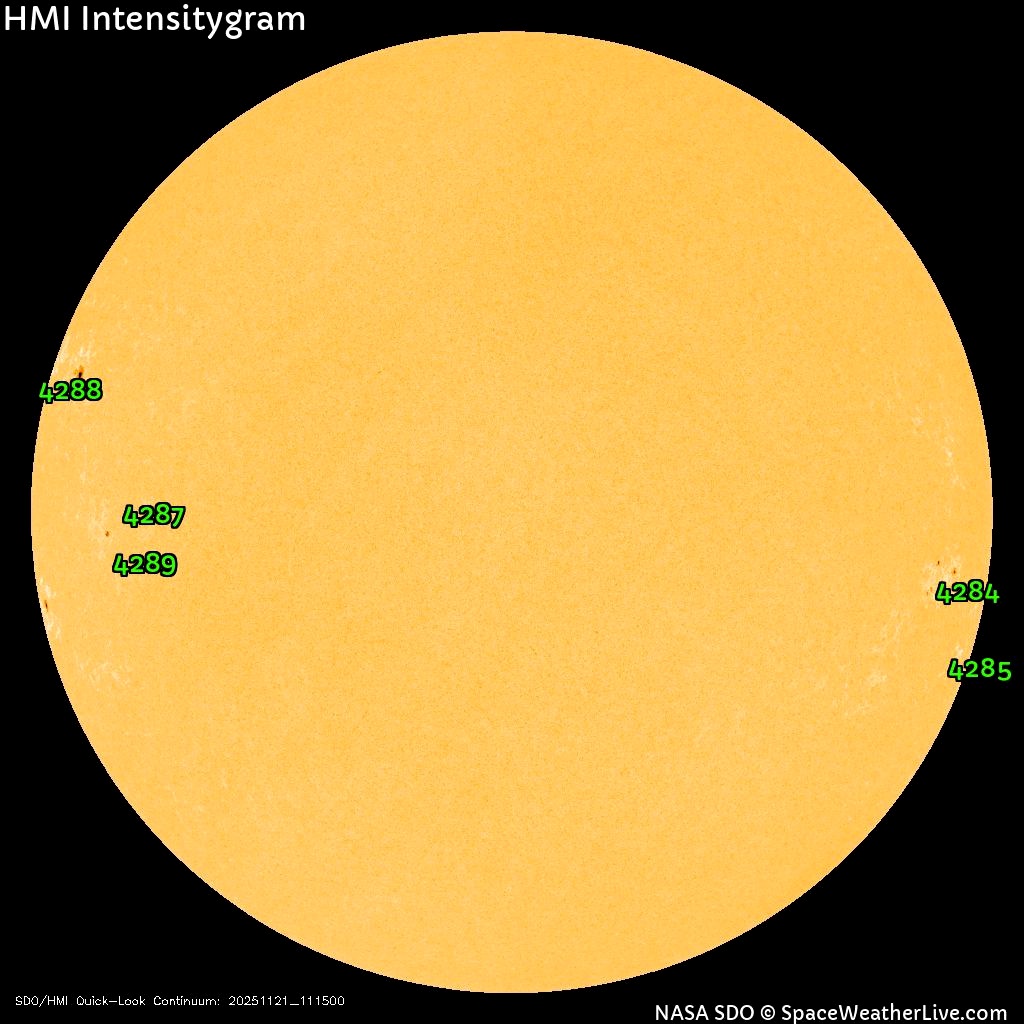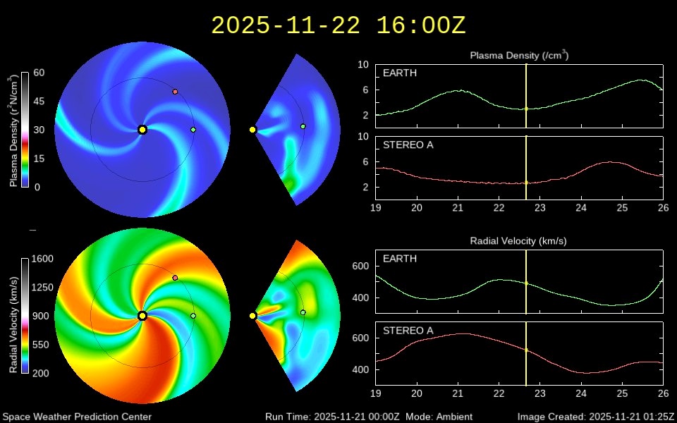 Ближе к ночи Kp опустится до 1.3 балла, затем немного подрастет, потом снова опустится — и останется на уровне 1.3-1.6 балла на всем протяжении 23 ноября. По меркам последних недель это отличный показатель.