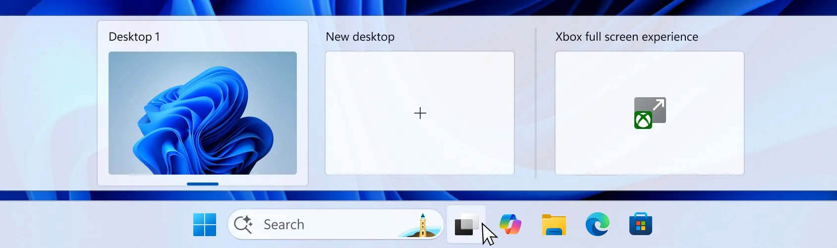 Технически новый режим устроен как отдельный рабочий стол. Его можно найти либо в стандартном интерфейсе переключения рабочих столов, либо в настройках Game Bar, либо просто нажав сочетание клавиш Win+F11.