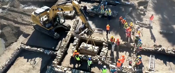 Останки были окружены десятками артефактов. В саркофаге нашли 140 монет, стеклянные сосуды, бронзовые фигурки, янтарное украшение и фрагменты ткани с золотыми нитями. Рядом с саркофагом исследователи нашли восемь более простых могил и фрагменты древнего акведука.