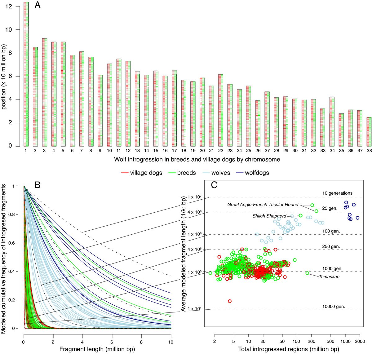 Ранее считалось, что гены волков полностью исчезли у домашних собак после их одомашнивания около 20 тысяч лет назад. Новые данные показывают, что скрещивание собак с волками происходило гораздо позже, в течение последних нескольких тысяч лет.