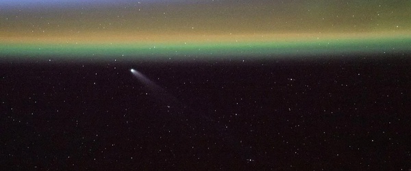 Полярные сияния были видны не только с борта самолетов, но и на орбите. Членам экипажа Международной космической станции удалось сделать несколько эффектных кадров, причем на фоне полярных сияний здесь видны две кометы: Lemmon и Swan.