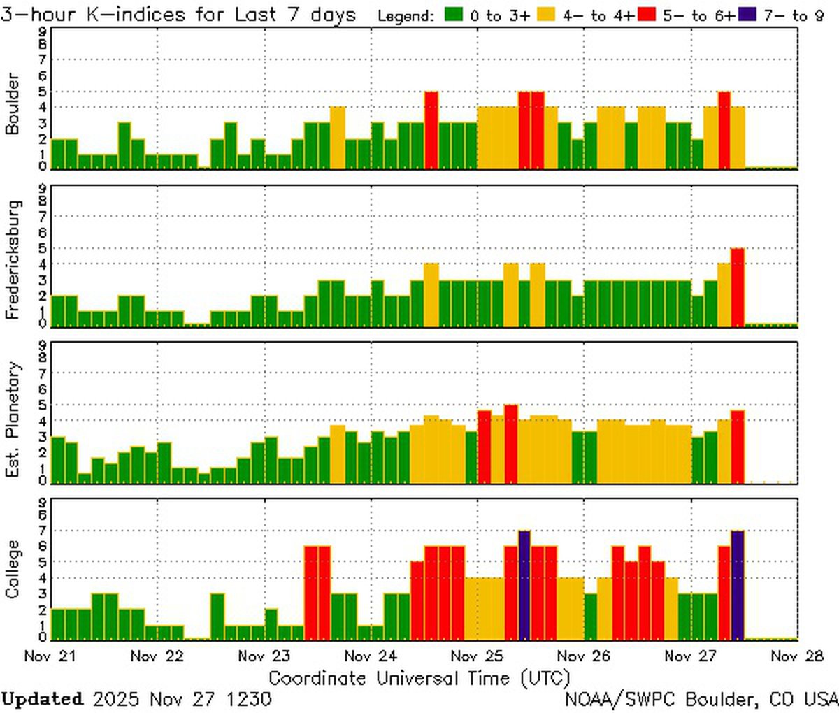 Наглядным подтверждением сложности прогнозирования стало 27 ноября. Прогноз на день менялся уже несколько раз, в итоге мы увидели совсем не такую ситуацию, как в ранних прогнозах; теперь аналитики обещают 9-часовую магнитную бурю во второй половине дня.
