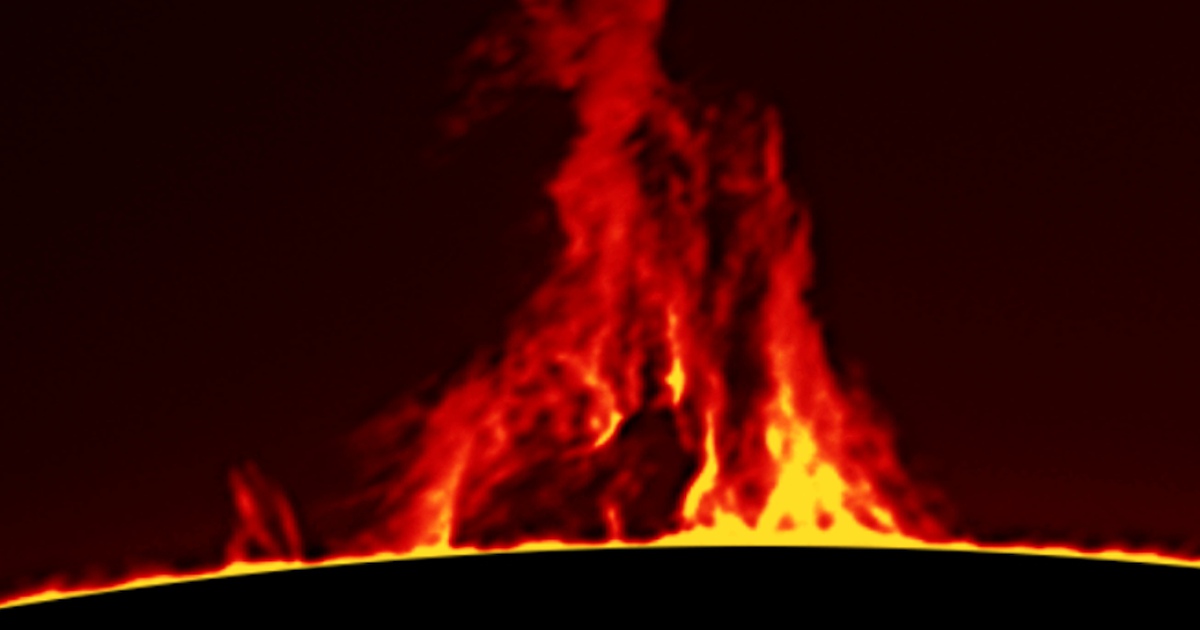 Предполагается, что по размеру «костер» был примерно в 5 раз больше диаметра Земли. Некоторое время протуберанец эффектно крутился на поверхности Солнца, а затем разрушился.