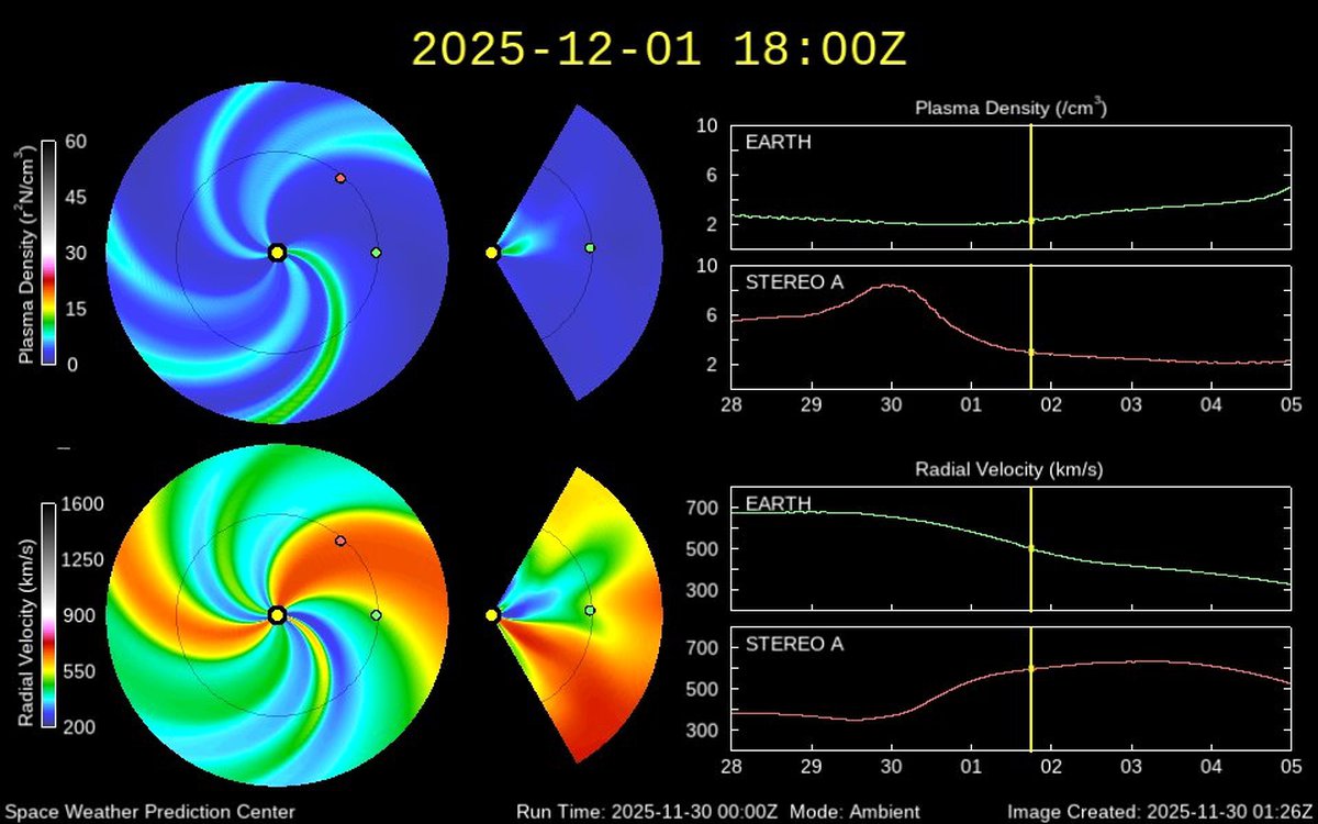 Хорошие новости: геомагнитная обстановка 1 декабря будет спокойной, считают аналитики NOAA США и британского Met Office. Вопреки ожиданиям, Земля действительно вышла из потока частиц, извергавшихся недавней корональной дырой на Солнце.
