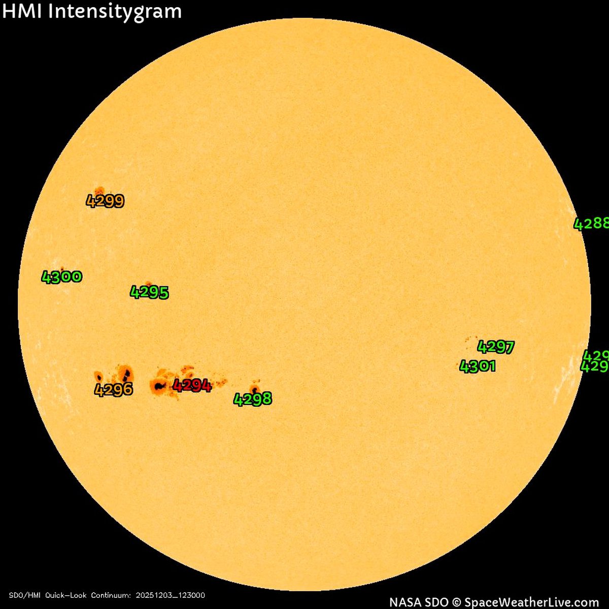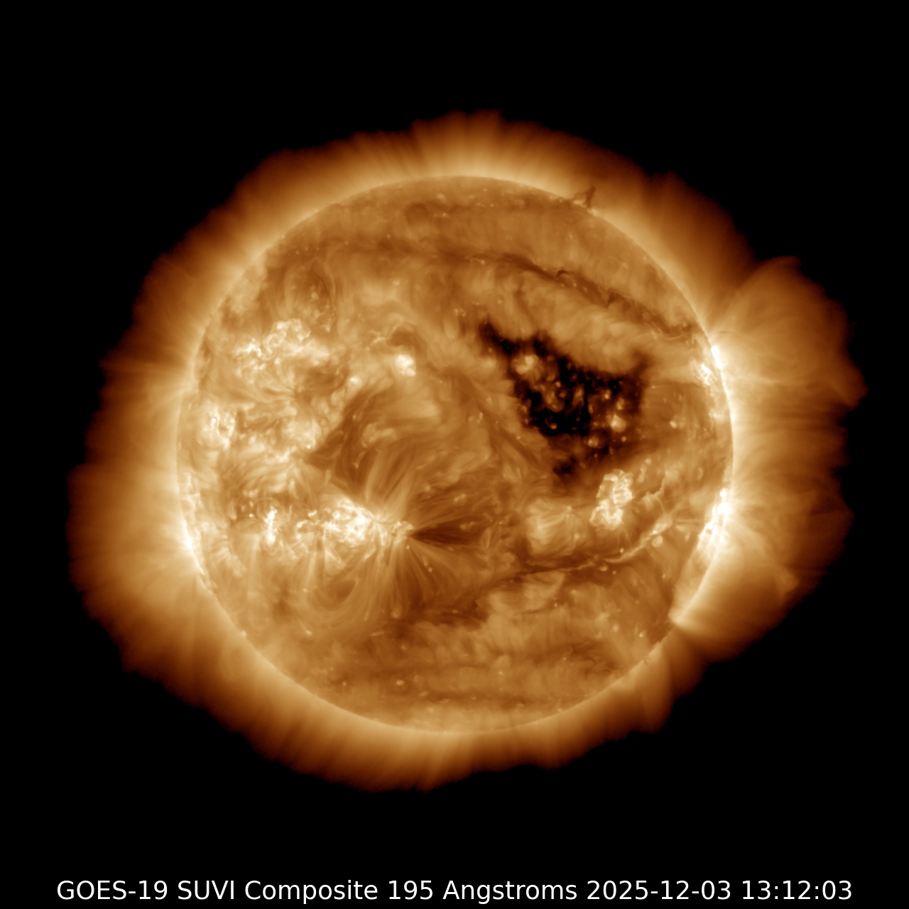 Возможно, геомагнитная буря начнется не вечером 3 декабря, а раньше. Уже сейчас детекторы NOAA фиксируют рост активности до бури класса G1 в некоторых регионах, вероятно, поток частиц оказался быстрее, чем полагали аналитики.
