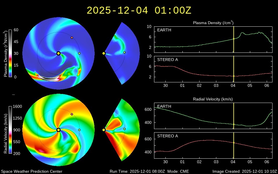 Геомагнитная обстановка 4 декабря будет напряженной, следует из прогнозов NOAA США и британского Met Office. Аналитики все еще ожидают, что до Земли доберется быстрый поток частиц, подстегнутый недавним корональным выбросом массы.
