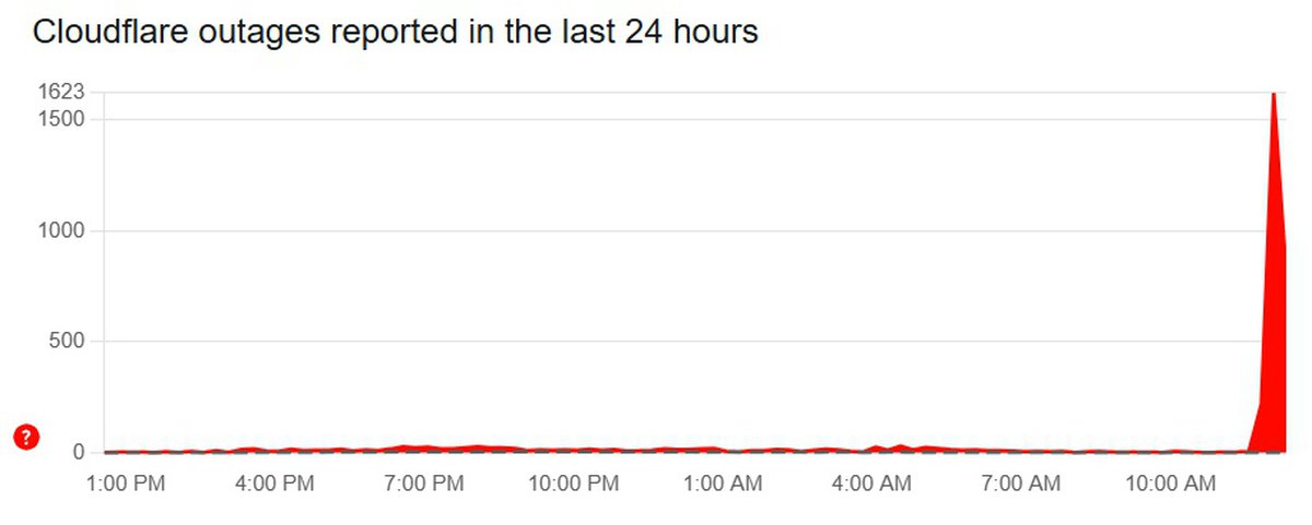 Сообщения об ошибках начали появляться в районе 11 утра по Москве: сайты, работавшие через Cloudflare, проосто не загружались или выдавали 500 ошибку. Примерно через полтора часа количество ошибок удалось сильно снизить, но жалобы появляются до сих пор.