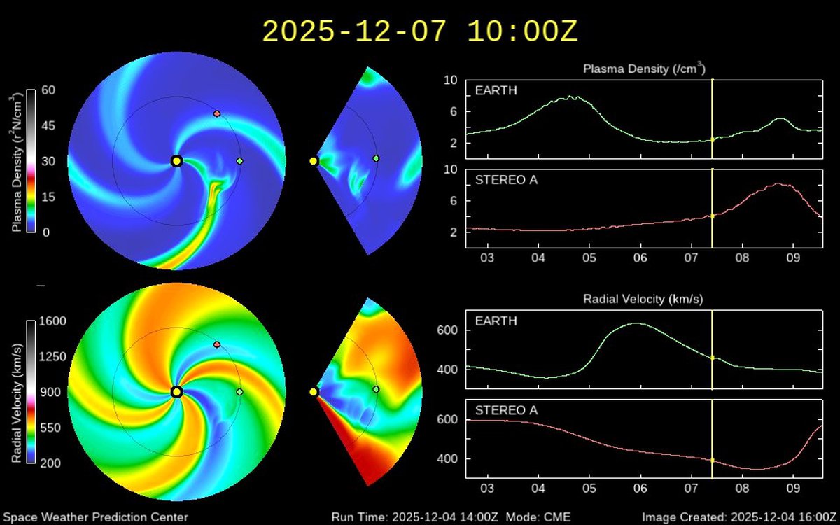 Прежде планета находилась в потоке быстрого, но не очень плотного солнечного ветра. Теперь Земля окажется на границе этого потока с другим — медленным, но плотнее. Именно здесь 7 декабря нас подстерегает геомагнитная буря.