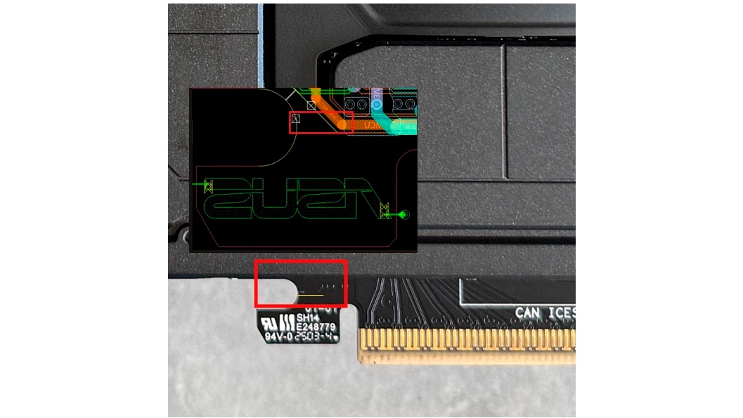 По словам реддитора, в какой-то момент видеокарта начала глючить: ПК начал перезагружаться, экран периодически гас. Оказалось, у карты есть небольшой дефект: микротрещина возле защелки разъема PCI Express.