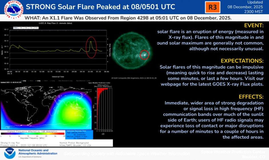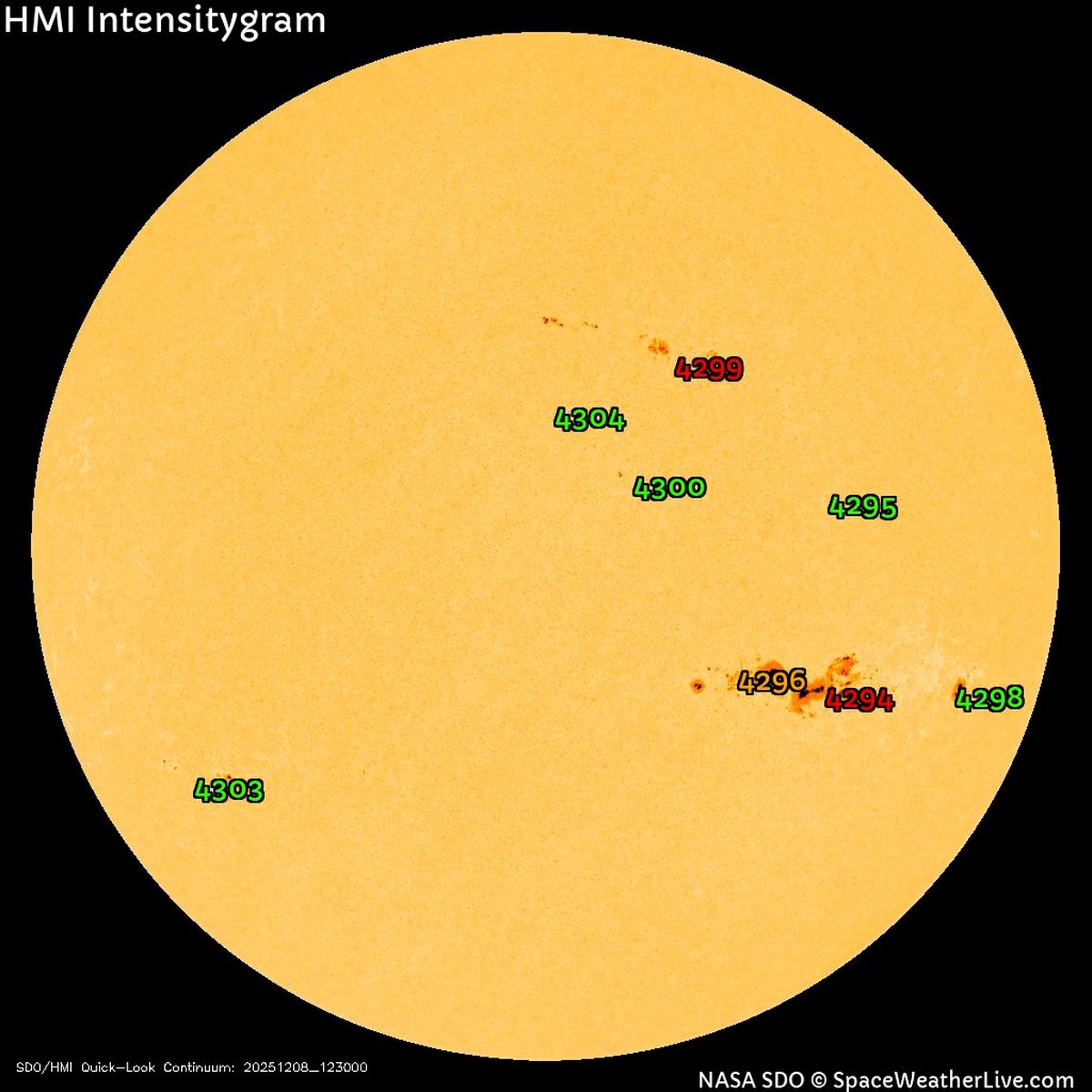 Скорее всего, вторая половина дня 10 декабря, когда шторм утихнет, будет лишь небольшой передышкой между бурями. 8 декабря Солнце выдало еще несколько вспышек, одна из которых достигла максимального класса X; вспышки, видимо, сопровождались корональным выбросами массы.