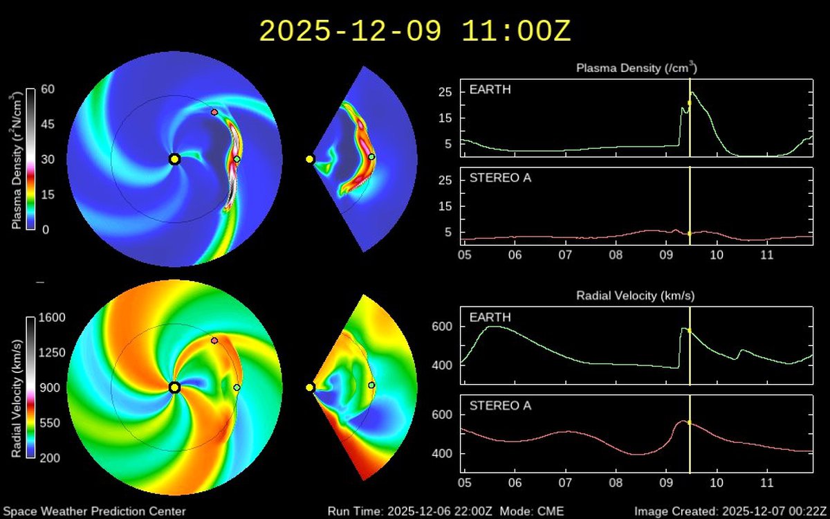 Эти выбросы могут достичь Земли либо 10, либо 11 декабря. Есть вероятность, что мы снова получим длительную магнитную бурю, причем она, возможно, будет перекрываться с нынешним штормом.