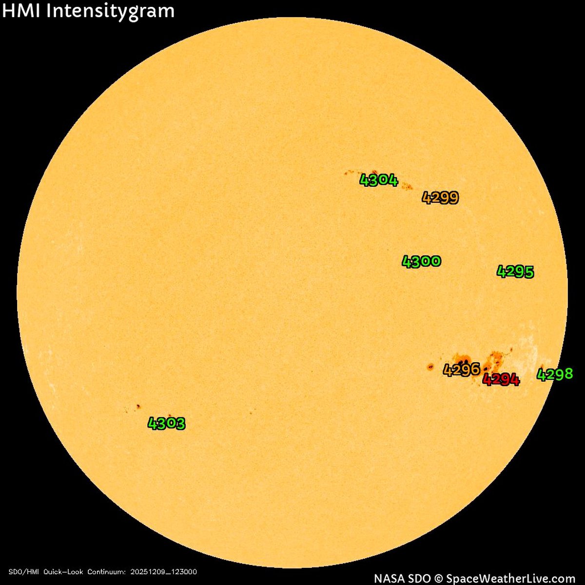 Вспышки на Солнце, способные вызвать корональные выбросы массы, могут наблюдаться еще несколько дней — до тех пор, как крупные нестабильные пятна, генерирующие вспышки, не уйдут с видимой части звезды. Скорее всего, пятна скроются с диска Солнца уже на этой неделе.