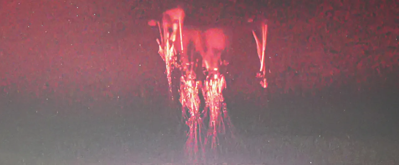 В какой-то момент над страной можно было увидеть алые молнии, стремящиеся к Земле из центра алого круга — словно корабль пришельцев наносит удар. На самом деле это комбинация двух природных явлений, очень редко появляющихся вместе.